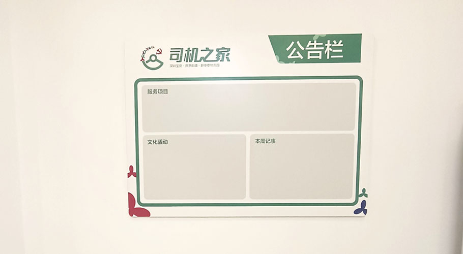 深圳市勤蜂廣告設計有限公司,應部門單位的規劃需求,勇于當擔,負責承接深圳市寶安區松崗,沙井、福永、航城、西鄉和新安街道等片區中大型物流園司機之家的裝飾、廣告物料、司機文化墻、門頭招牌、形象背景墻、黨建文化墻、宣傳欄的制作和施工。