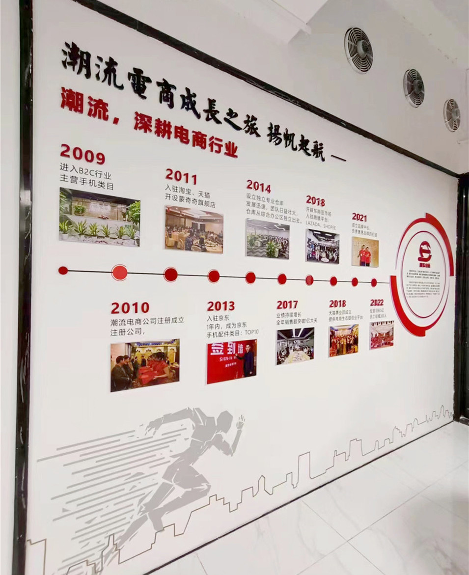 玻璃墻怎么制作安裝文化墻——潮流電子文化墻制作分享