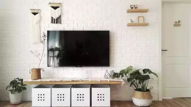 文化磚電視墻上裝上小擱板,擺上精致的擺飾,也是顯得很優雅清新。