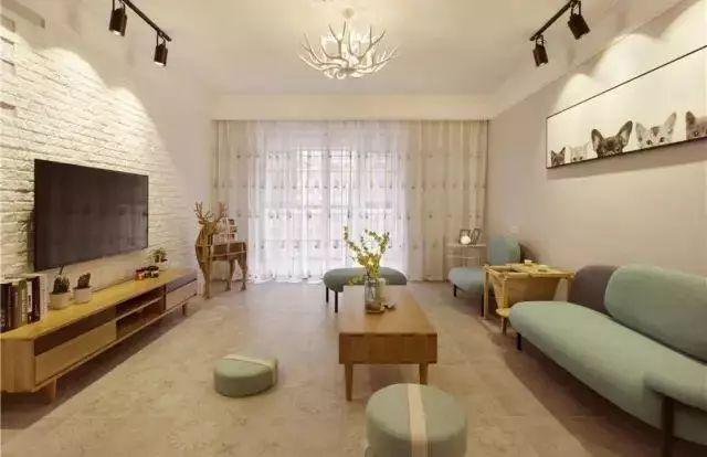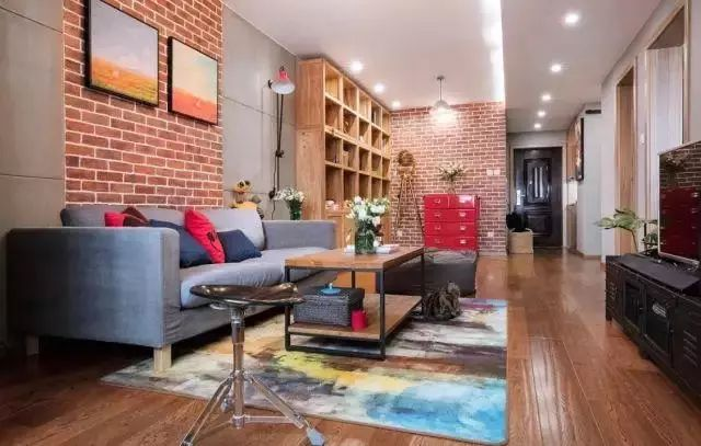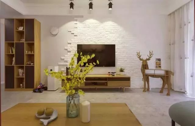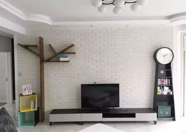 喜歡現代工業風的年輕人,直接刷白的電視墻顯得太單調了,那么可以考慮刷一面文化磚電視墻,瞬間讓客廳顯得文藝精致不少。