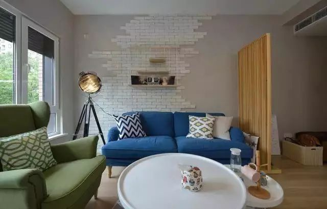 文化磚的沙發墻,在上邊做隔板架,清新精致又愜意。