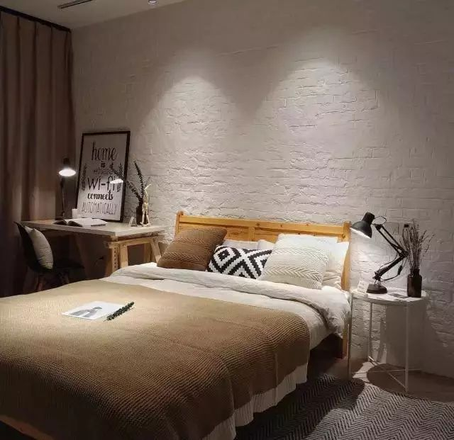 臥室里做文化磚的墻面,比較適合做工業風的臥室,這種裝飾讓臥室更具文藝氣息,效果也是很棒的。