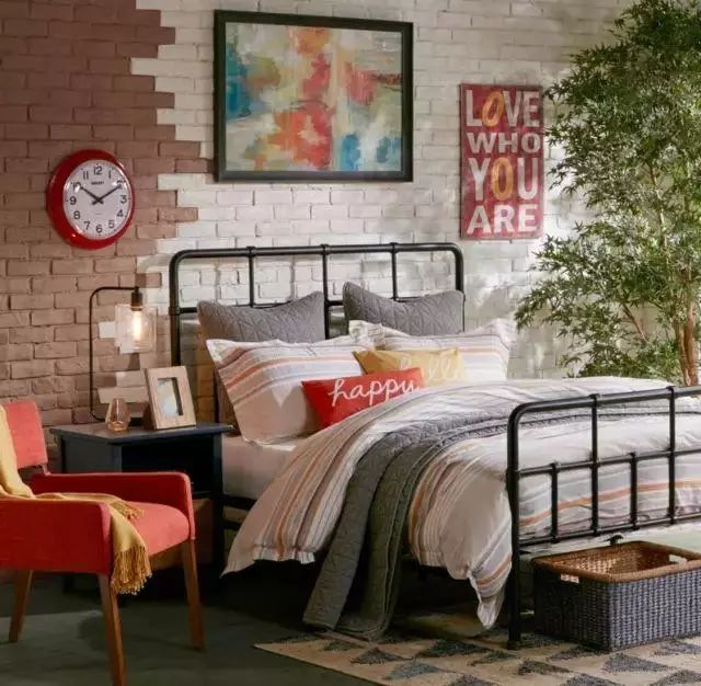 直接在裸磚上滾漆,粗獷又年輕大膽。