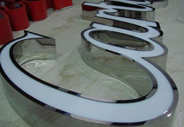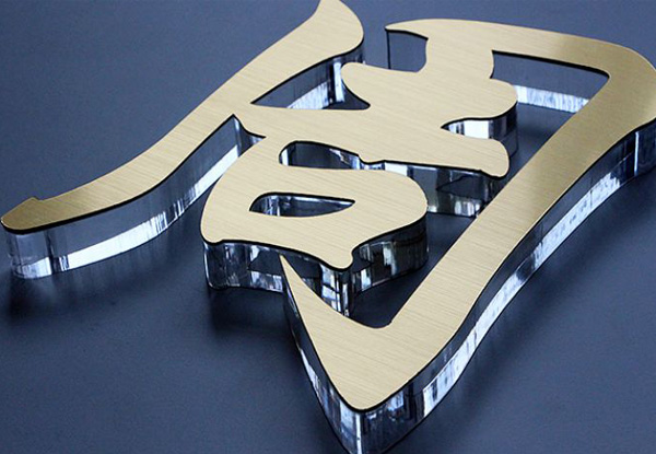 應用于背景墻,以及小的門頭字,或大的門頭用于做小類目或地址電話之類的。主要是以水晶字為主,材料由有機玻璃板雕刻成形的;優點是各種色板都有,像玻璃樣光澤、透亮、顯高檔,但不耐磨、易劃破、三到五年失去光澤;普遍應用于中小型企業公司或專賣店形象墻、門店招牌、門牌用字。一般是雙層的亞克力制作,下面是透明的亞克力(一般厚度有5mm,8mm,10mm),面板是3mm厚的帶顏色亞克力。采用粘合方法連接在一起,從側方看有水晶的效果,故俗稱“水晶字”。