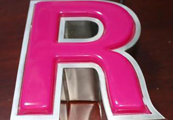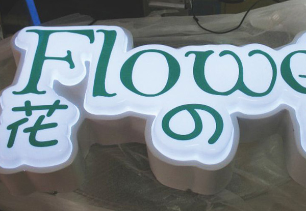 樹脂字:樹脂字即環氧樹脂發光字,一般商場內、連鎖店發光字、中高檔企業背景墻、文化墻大多采用環氧樹脂發光字,它的加工工藝方法是通過樹脂均勻攪拌一定比例的勻光劑和色漿,然后根據字型一次澆鑄成型做成的字。其澆鑄層透光而不透明,白天顏色可根據色漿顏色隨意調節,如果內置光源,就成為樹脂發光字。