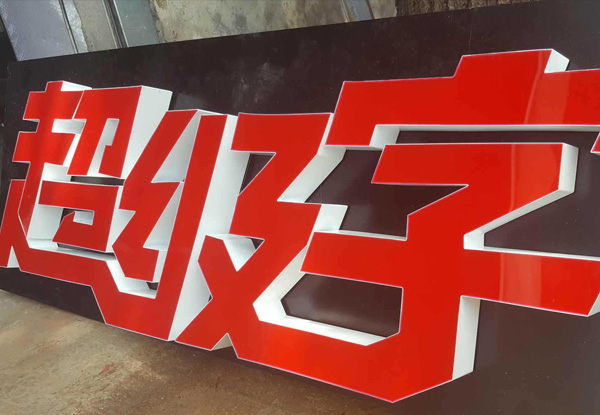 超級字,又叫液態亞克力發光字,是近期廣告標識行業推出的又一新型發光字技術,新型的材料和創新工藝的結合體。制作工藝是:采用輕質的鋁字圍邊字殼,表面倒灌液態亞克力膠,常溫固化而成,液態亞克力膠固化后與鋁字殼緊緊粘接在一起,從整體外觀上表現出無縫一體化,棱角分明,立體感十分強??蓱糜趯毎查T頭招牌各種場所,也不易變色,是改變樹脂字戶外環境氧化變色的技術措施。
