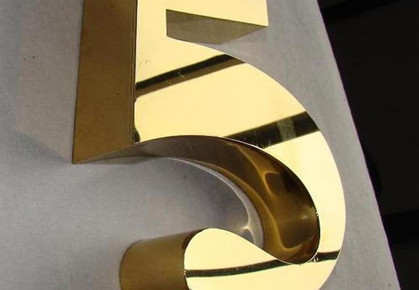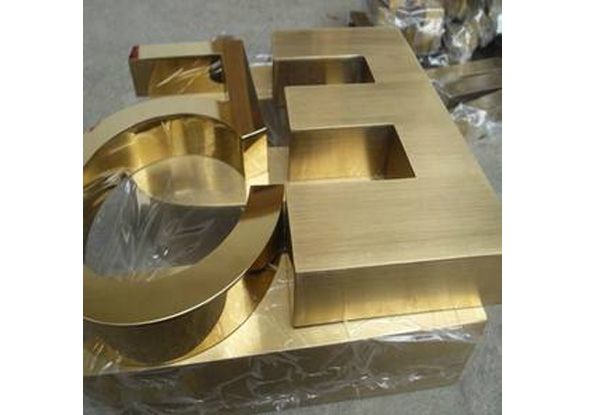 銅字不易生銹,它的顏色只有一種,即金黃色,給人感覺富麗堂皇、很威嚴。許多政府單位用得多,像外樓的字、門牌、行政牌等。銅,亦是較易氧化的金屬,因此常將它進行電鍍或完成字形加工后將表面拋光處理,再做封閉漆(防銹),使其金光閃閃,凸顯出來的效果更好。