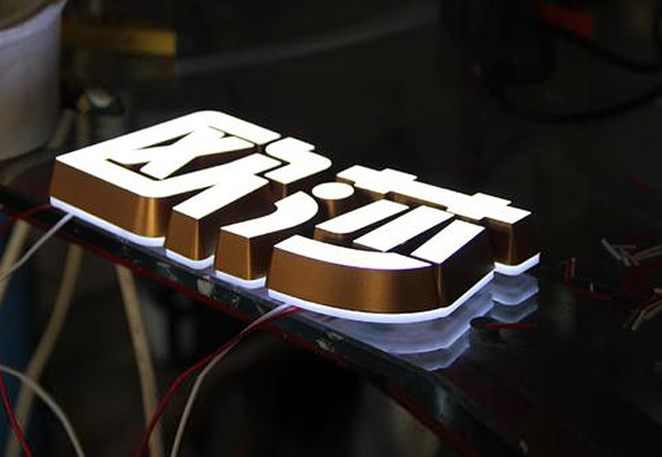 背光字俗稱背打光字,就是光源安裝在不銹鋼字背面字殼內,光打在墻面上的一種發光字,背打光字工藝精致,高檔雅制,根據不同的做法可以安裝在寶安室外廣告招牌門頭或者室內形象墻上等。制作施工工藝:背光字面殼采用不銹鋼折彎打磨精工制作,內置LED光源(光源顏色可選)字底用亞克力激光雕刻成字形或用專用支架均勻支撐懸空。