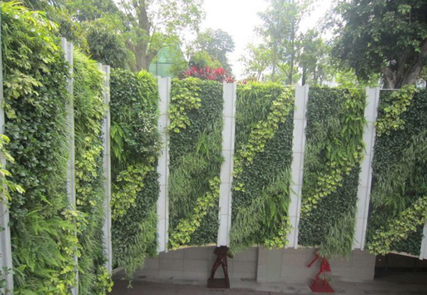 植物墻是用綠色植物編植成的墻體,是利用植物的根系對生長環境的超強自適應能力,使自然界中棲息于平地上的植物永久地生長于垂直的建筑墻面,為建筑設計和建筑裝飾提供一種新型的有機生態材料。綠植墻特點:凈化空氣、低碳節能、美化城市、隔離噪音、溫度調節、使城市漫步涼爽、生態修復、生態保健、綠色營銷、資產增值。